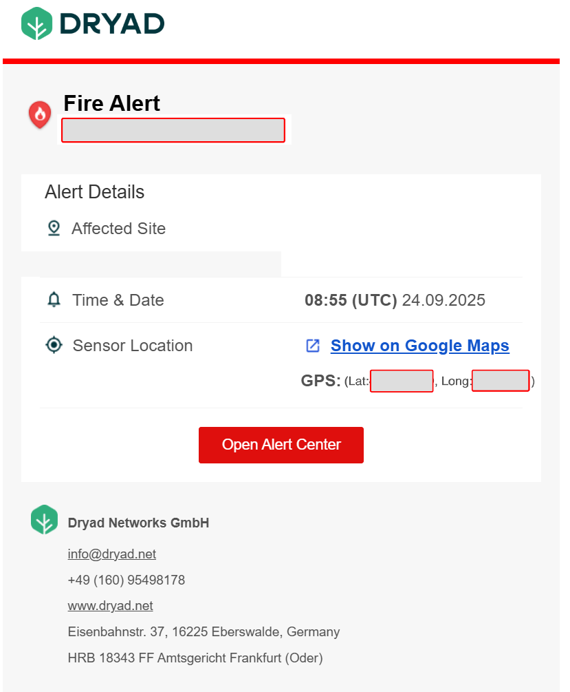 - GPS Coordinates: Latitude and Longitude of the Sensor triggering the alert.
