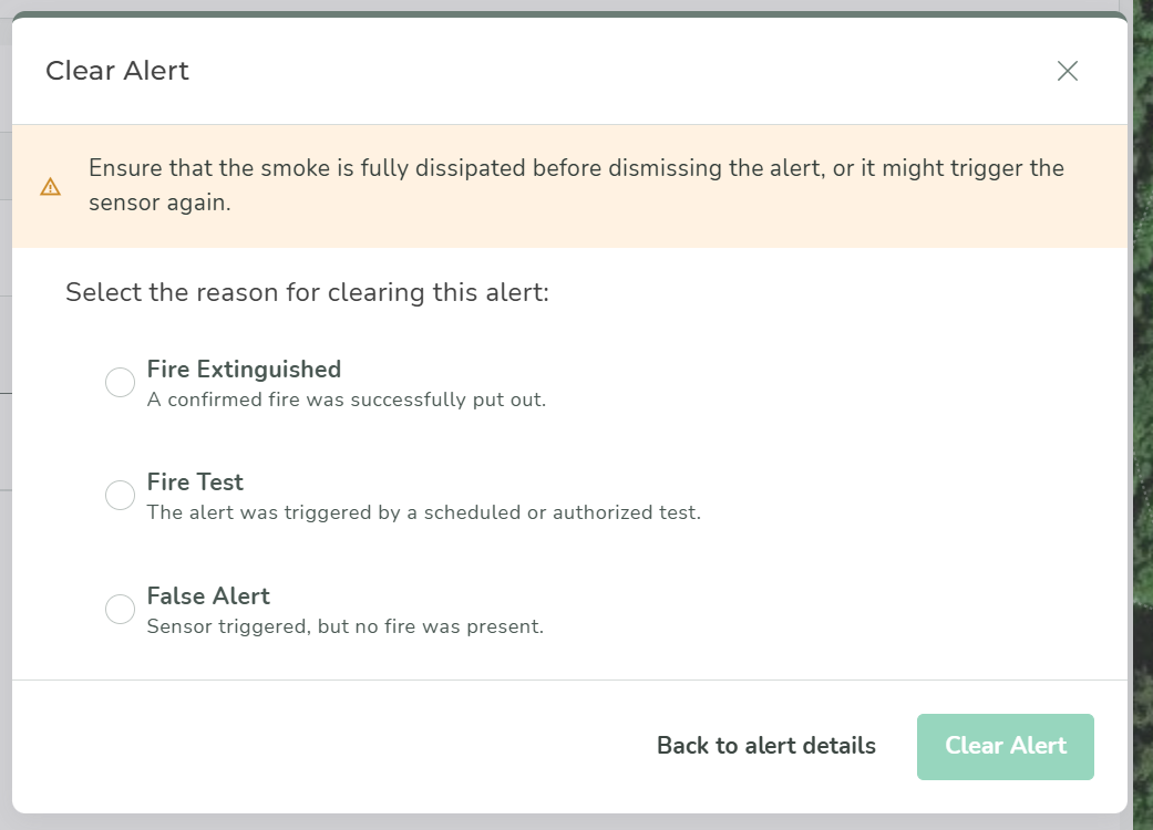 - In the dialogue that appears, choose a reason for clearing the alert:
