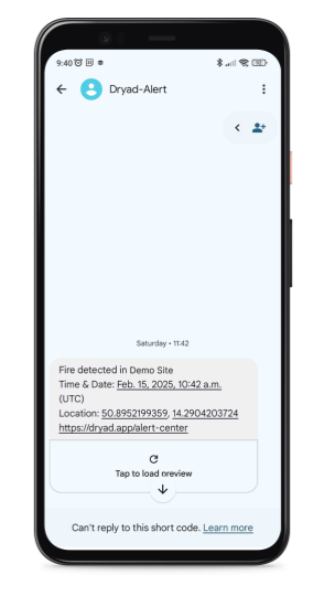 When the Silvanet system detects a smoldering fire, it immediately generates a fire alert.