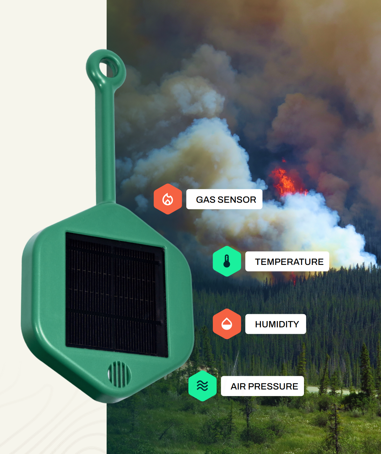 After the Wildfire Sensor has been calibrated, the gas sensor continuously monitors the microclimate of the forest air to measure: