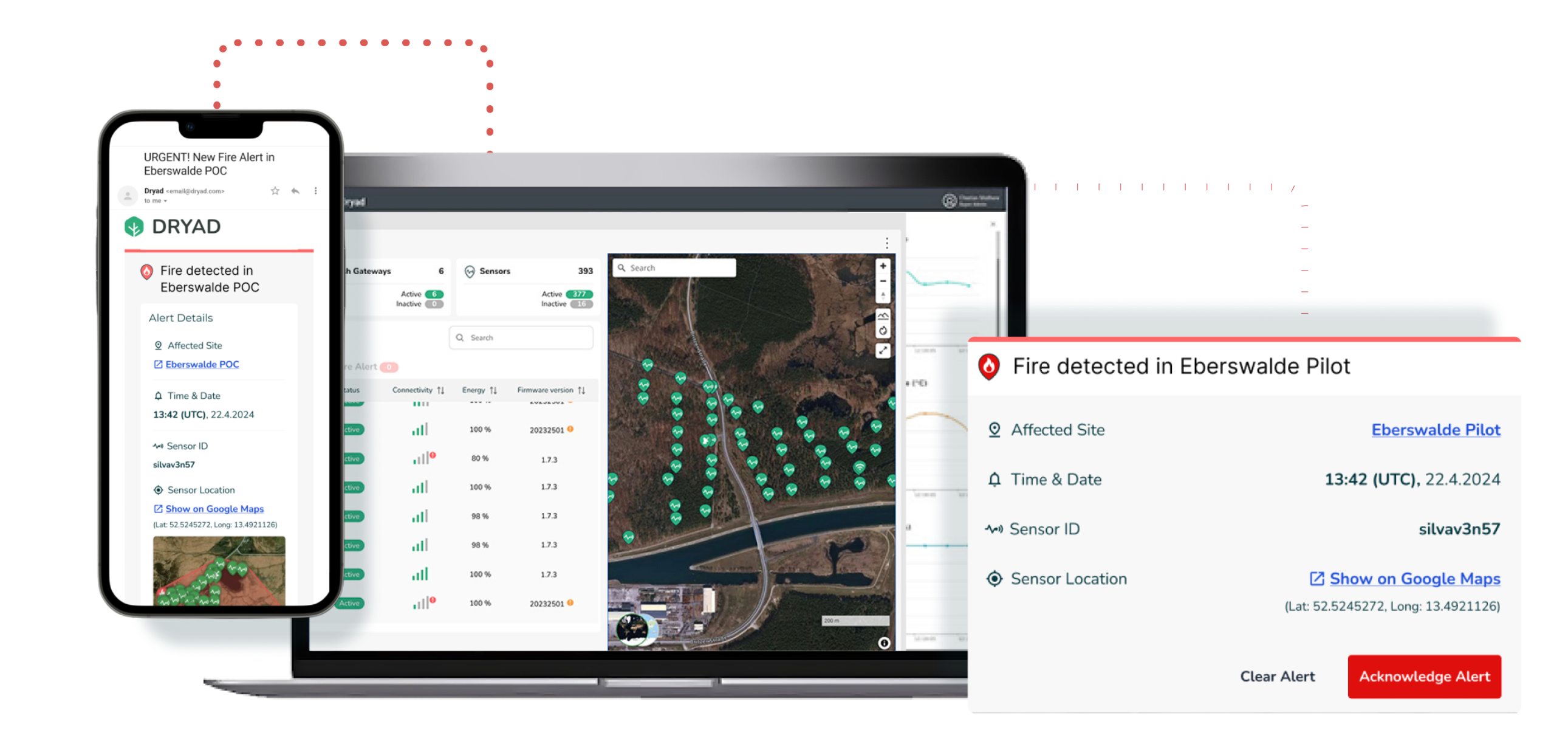 Alert Creation: The Silvanet Cloud analyzes the incoming data using advanced algorithms and machine learning, triggering a fire alert or warning when certain thresholds are met.