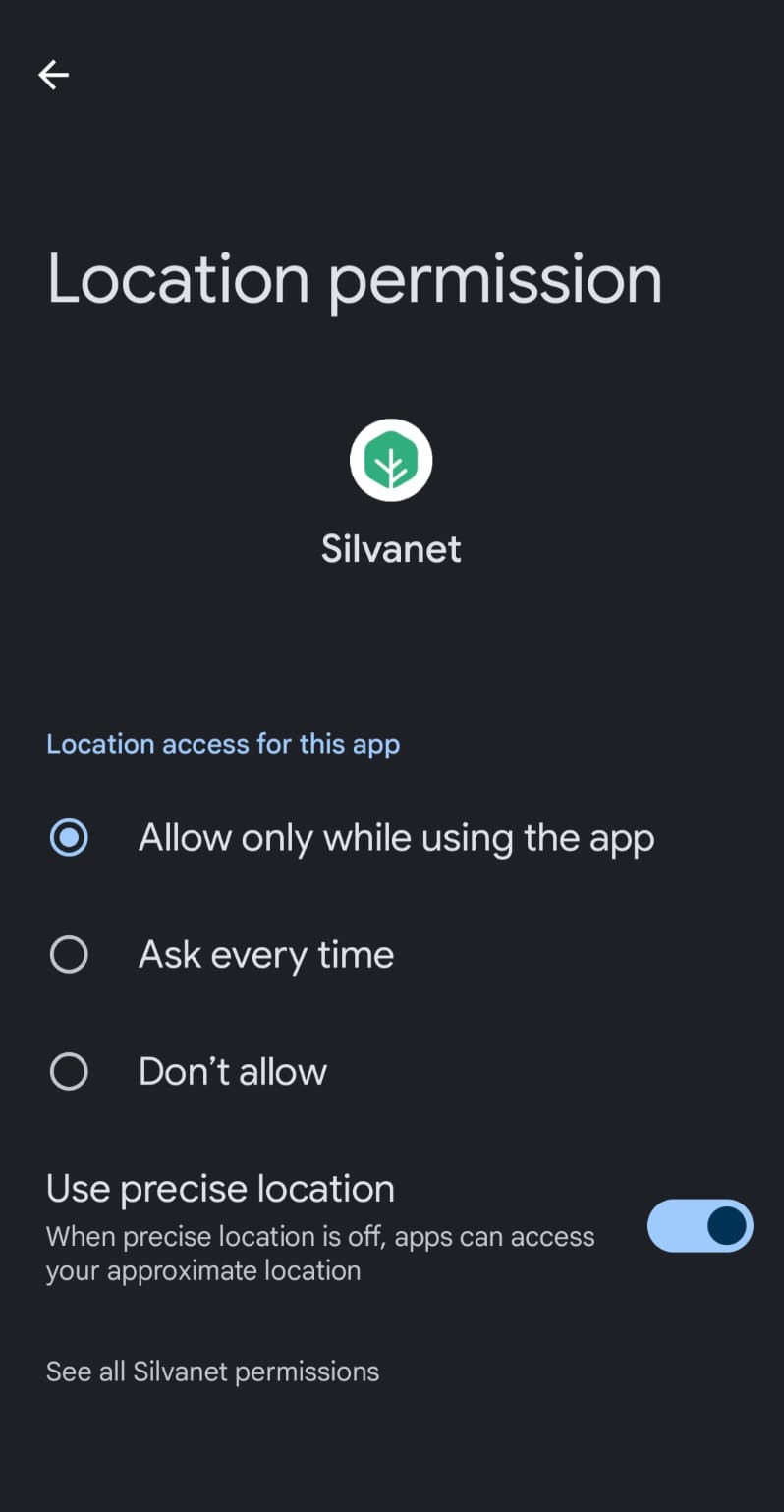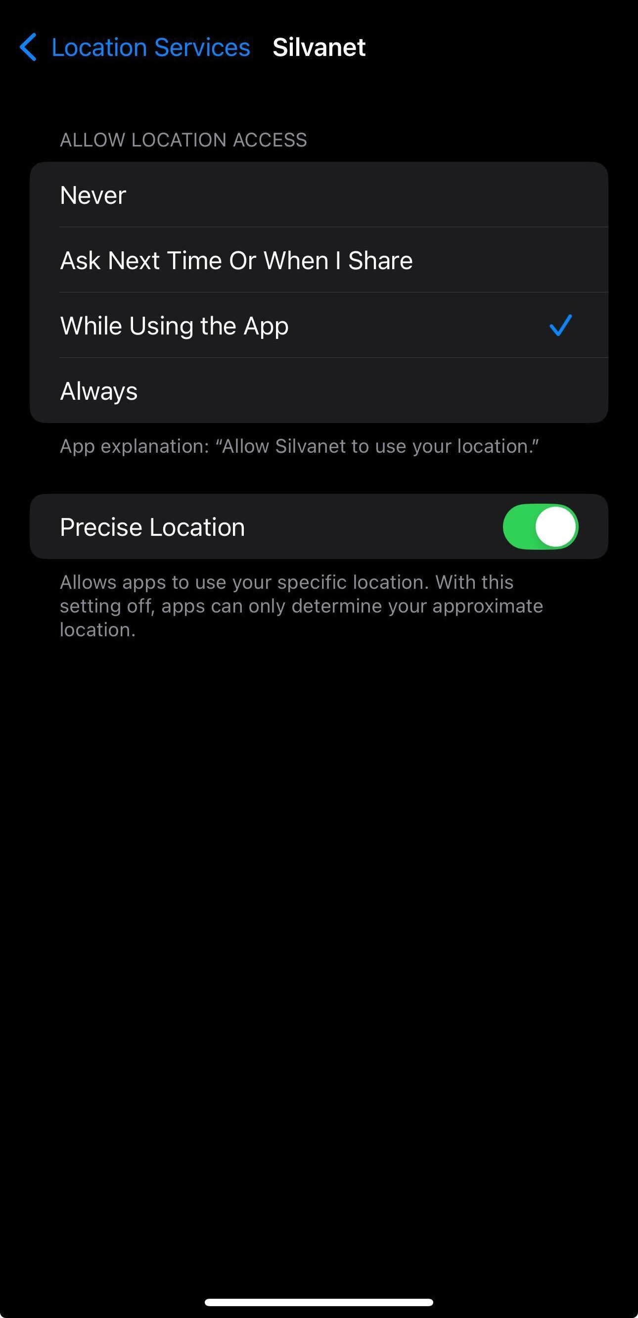 What is "Precise Location" settings and how does effect the performance of the Silvanet Deployment app?