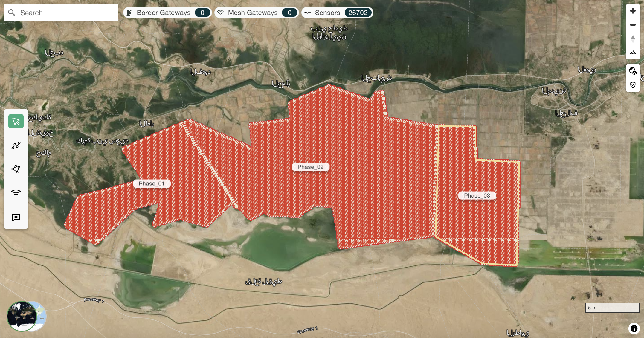 Remove sensor areas, gateways, or network segments that will not be deployed in the specific phase. For example, in the Phase 1 plan, remove Phase 2 and Phase 3 sensor areas.