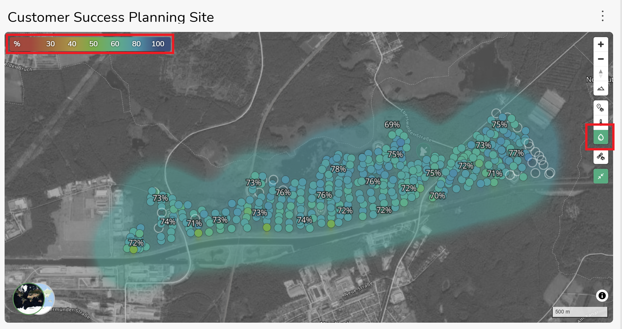 This layer displays live temperature and relative humidity readings from your deployed sensors, helping you better understand site conditions at a glance.